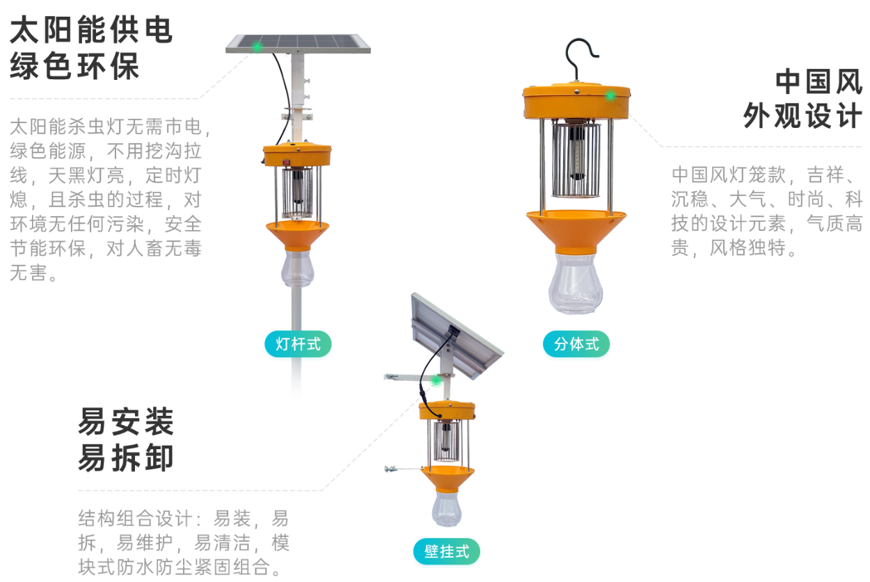 具備光控、雨控、時(shí)控 3種智能控制切換模式,實(shí)現(xiàn)依據(jù)晝夜、 天氣、時(shí)段變化自動(dòng)控制燈光,無(wú)需人工看管也能智能殺蟲。